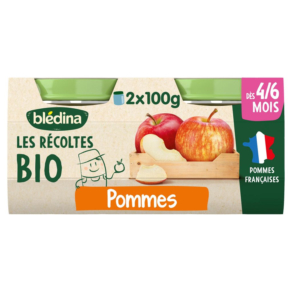 Les Récoltes Bio de Blédina ce sont plus de 35 recettes adaptées aux besoins* de bébé. Nos petits pots sont engagés pour l'agriculture durable avec nos agriculteurs partenaires, et cuisinés en France à Brive-la-Gaillarde. Blédina Les Récoltes Bio - Pommes dès 4/6 mois. De délicieux petits pots bébé bio, pour faire découvrir à bébé ses premiers fruits tout en douceur, avec une texture lisse et dans un format adapté aux premières cuillères. *Selon la réglementation de l'alimentation infantile