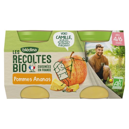 Blédina Les Récoltes Bio - Pommes Ananas dès 6 mois. Les Récoltes Bio, de délicieux petits pots bio pour faire découvrir à bébé ses premiers fruits tout en douceur.