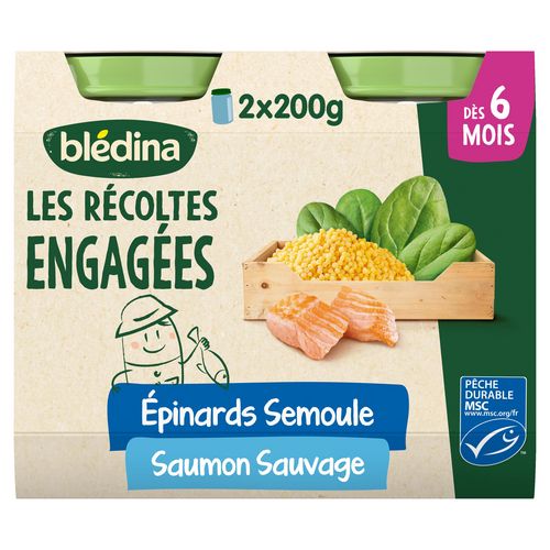 Les récoltes engagées petit pot épinards semoule saumon sauvage MSC dès 6 mois
