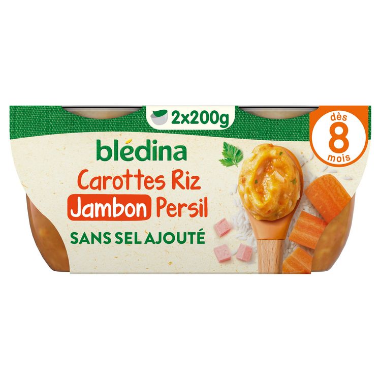 Expert de la diversification alimentaire depuis plus de 100 ans, Blédina vous accompagne pour tous les repas de votre bébé. Notre mission ? Eveiller sa curiosité pour le manger vrai, grâce à plus de 250 recettes conçues par des nutritionnistes et parfaitement adaptées à ses besoins*. Blédina Ecrasé de Carottes Riz & Jambon persil dès 8 mois Découvrez notre gamme de petits plats pour éveiller la gourmandise de bébé et le préparer à bien mâcher : à chaque âge sa texture ! *Selon la réglementation de l'alimentation infantile