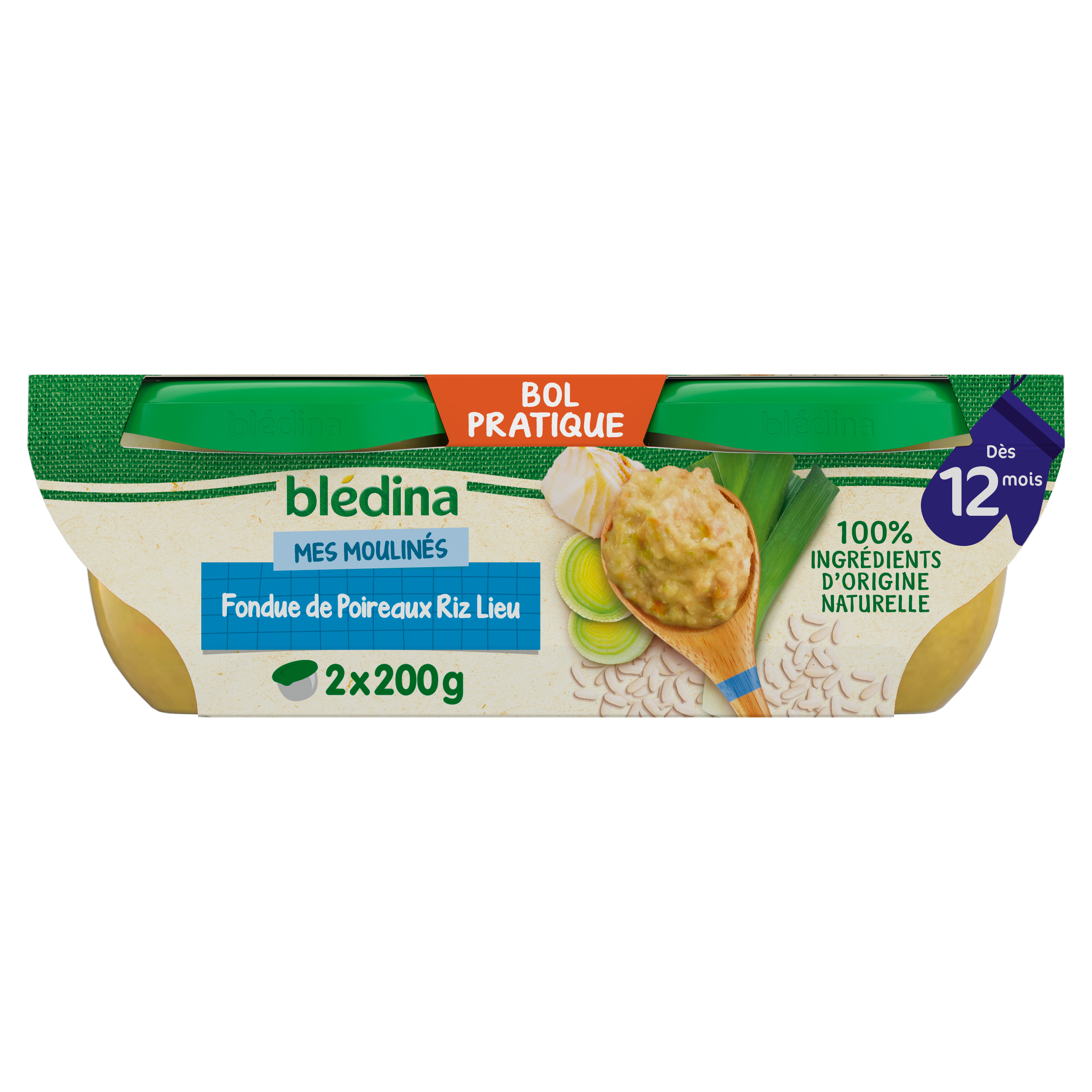 Expert de la diversification alimentaire depuis plus de 100 ans, Blédina vous accompagne pour tous les repas de votre bébé. Notre mission ? Eveiller sa curiosité pour le manger vrai, grâce à plus de 250 recettes conçues par des nutritionnistes et parfaitement adaptées à ses besoins. BLEDINA MES MOULINÉS. Fondue de Poireaux Riz Lieu - dès 12 mois. Découvrez ces plats pour bébé, de délicieuses recettes inspirées du fait-maison à la texture adaptée à chaque âge de bébé. Le tout dans un bol pratique et refermable.