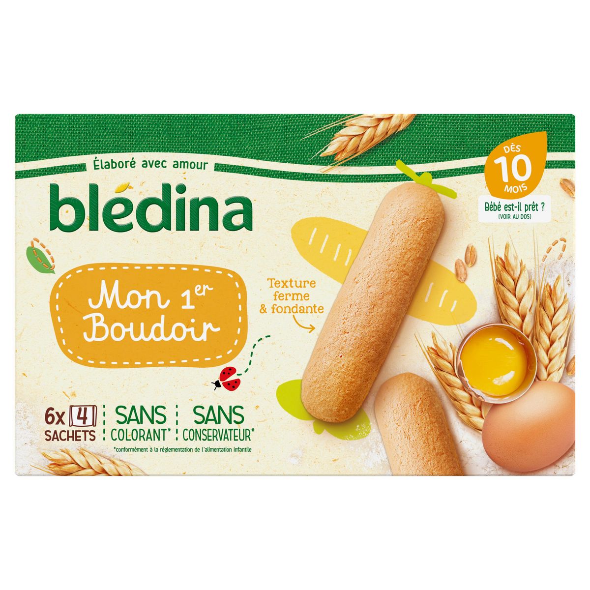 Expert de la diversification alimentaire depuis plus de 100 ans, Blédina vous accompagne pour tous les repas de votre bébé. Notre mission ? Eveiller sa curiosité pour le manger vrai, grâce à plus de 250 recettes conçues par des nutritionnistes et parfaitement adaptées à ses besoins. Dès 10 mois, des biscuits BLEDINA spécialement conçus pour Bébé pour un petit-déjeuner ou un goûter gourmand et adapté. Une texture ferme puis fondante en bouche adaptée aux 1ères dents. Forme idéale pour ses petites mains. Format pratique: 6 sachets de 4 biscuits pour les emporter partout. Bébé est-il prêt ? Vous pouvez donner ce biscuit à votre bébé s'il : se tient assis tout seul dans sa chaise bébé et mange des plats avec des petits morceaux et mange un morceau de pain et a déjà deux dents. Attention : C'est toujours assis bien droit et sous la surveillance permanente d'un adulte que votre bébé peut savourer ce biscuit.