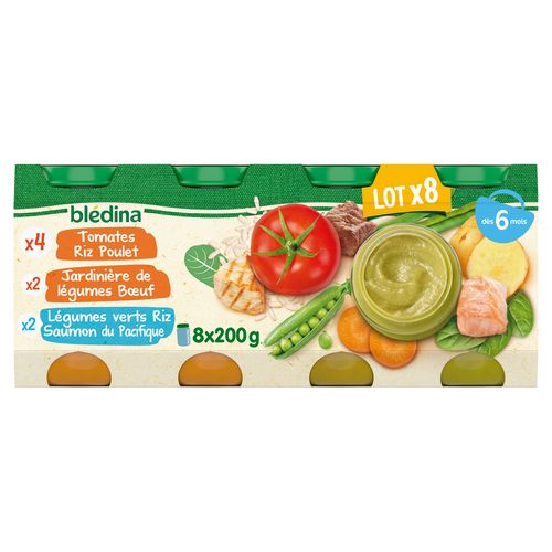 Expert de la diversification alimentaire depuis plus de 100 ans, Blédina vous accompagne pour tous les repas de votre bébé grâce à plus de 250 recettes conçues par des nutritionnistes et parfaitement adaptées à ses besoins*. Blédina - Tomates Riz Poulet /Jardinière De Légumes Bœuf / Petits Légumes Pommes de Terre Lieu dès 6 mois. Les petits pots blédina, de délicieuses recettes pour faire découvrir à bébé ses premiers mélanges de légumes ! Une texture lisse et fondante, à déguster dès 6 mois. *Selon la réglementation de l'alimentation infantile.