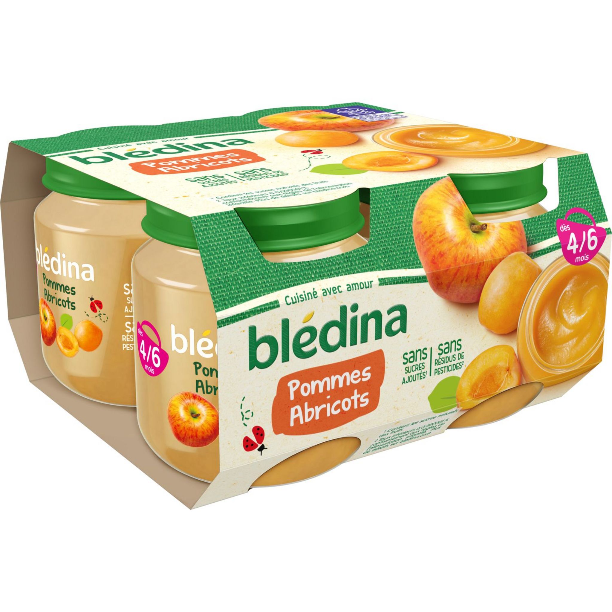 Purée de fruits adaptée à bébé. Blédina Pommes Abricots.