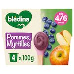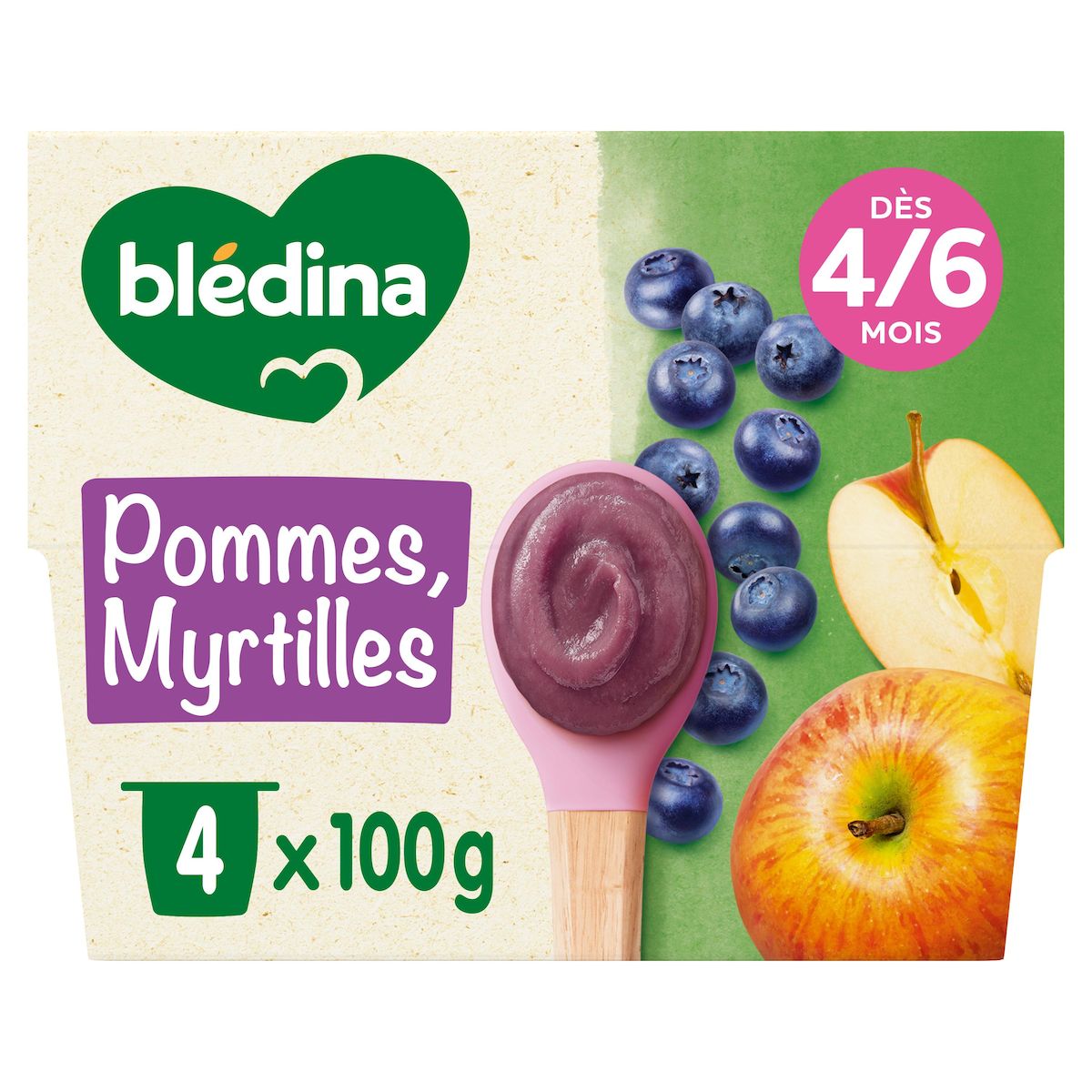 Ingrédients : Purée de pommes 84,9 % - Purée de myrtilles 15 % - Vitamine C. SANS GLUTEN