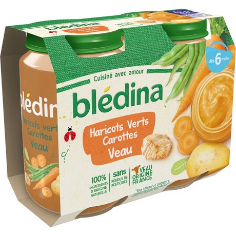 Pour poursuivre l'initiation de bébé, vous pouvez maintenant introduire la viande avec notre recette Purée Haricots verts Carottes Veau. Pour varier les plaisirs, Blédina propose plus de 15 petits pots aux recettes toutes simples ! Purée de légumes et de viande adaptée à bébé.