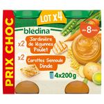 Expert de la diversification alimentaire depuis plus de 100 ans, Blédina vous accompagne pour tous les repas de votre bébé. Notre mission ? Eveiller sa curiosité pour le manger vrai, grâce à plus de 250 recettes conçues par des nutritionnistes et parfaitement adaptées à ses besoins. Blédina - Jardinière de Légumes Poulet dès 8 mois. Les petits pots blédina, de délicieuses recettes pour faire découvrir à bébé ses premiers morceaux. A déguster dès 8 mois. Blédina - Carottes Semoule Dinde dès 6 mois. Les petits pots blédina, de délicieuses recettes pour faire découvrir à bébé ses premiers légumes. A déguster dès 6 mois.