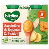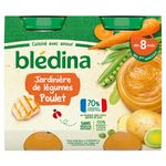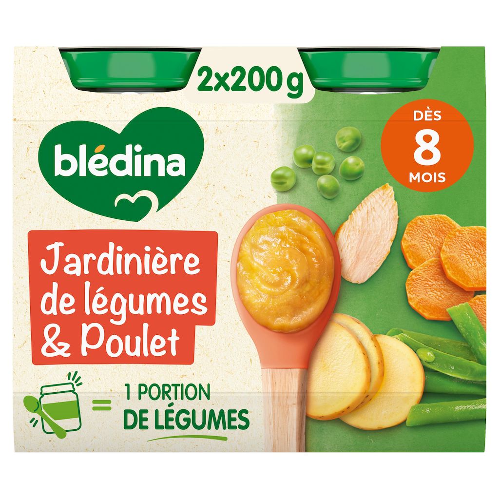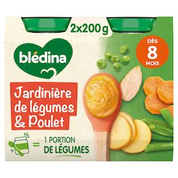 Expert de la diversification alimentaire depuis plus de 100 ans, Blédina vous accompagne pour tous les repas de votre bébé grâce à plus de 250 recettes conçues par des nutritionnistes et parfaitement adaptées à ses besoins*. Blédina - Jardinière de Légumes Poulet dès 8 mois. Les petits pots blédina, de délicieuses recettes pour un déjeuner complet avec légumes, féculents et protéines ! Une texture avec petits morceaux fondants à déguster dès 8 mois. *Selon la réglementation de l'alimentation infantile.