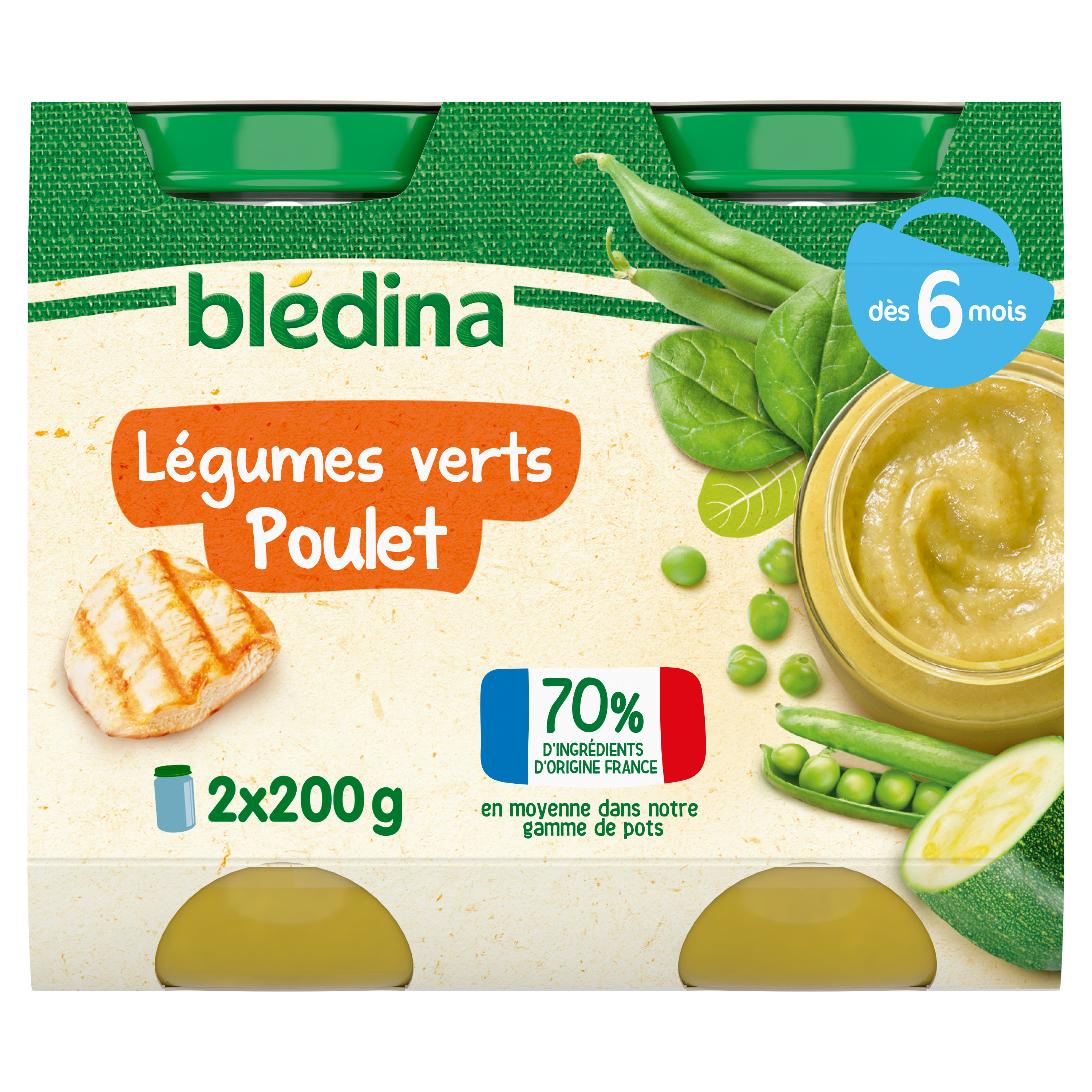 Expert de la diversification alimentaire depuis plus de 100 ans, Blédina vous accompagne pour tous les repas de votre bébé grâce à plus de 250 recettes conçues par des nutritionnistes et parfaitement adaptées à ses besoins*. Blédina - Légumes Verts Poulet dès 6 mois. Les petits pots blédina, de délicieuses recettes pour introduire la viande et le poisson dans l'alimentation de bébé. Une texture lisse et fondante à déguster dès 6 mois. *Selon la réglementation de l'alimentation infantile.
