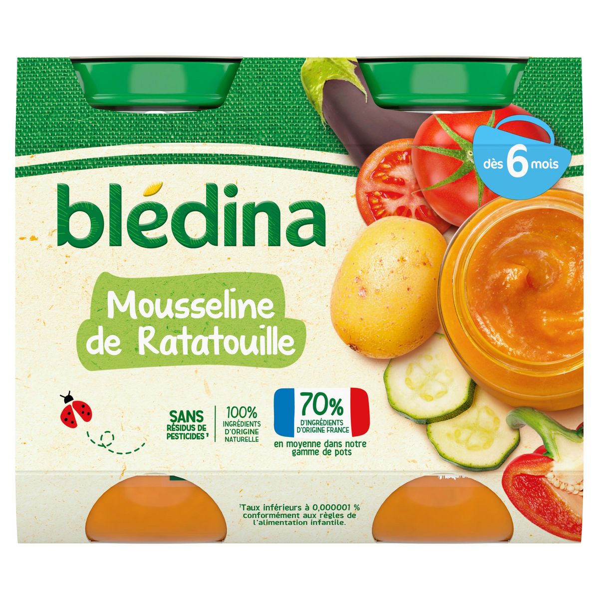 Expert de la diversification alimentaire depuis plus de 100 ans, Blédina vous accompagne pour tous les repas de votre bébé. Notre mission ? Eveiller sa curiosité pour le manger vrai, grâce à plus de 250 recettes conçues par des nutritionnistes et parfaitement adaptées à ses besoins. Blédina - Mousseline de Ratatouille dès 6 mois. Les petits pots blédina, de délicieuses recettes pour faire découvrir à bébé ses premiers légumes. A déguster dès 6 mois.