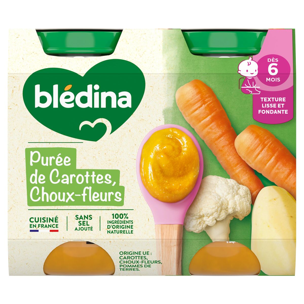 Expert de la diversification alimentaire depuis plus de 100 ans, Blédina vous accompagne pour tous les repas de votre bébé grâce à plus de 250 recettes conçues par des nutritionnistes et parfaitement adaptées à ses besoins*. Blédina - Carottes Choux-Fleurs dès 6 mois. Les petits pots blédina, de délicieuses recettes pour faire découvrir à bébé ses premiers mélanges légumes. Une texture lisse et fondante à déguster dès 6 mois. *Selon la réglementation de l'alimentation infantile.