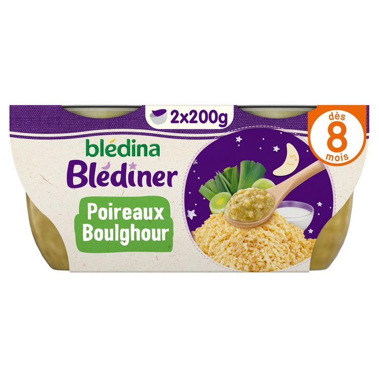 Expert de la diversification alimentaire depuis plus de 100 ans, Blédina vous accompagne pour tous les repas de votre bébé. Notre mission ? Eveiller sa curiosité pour le manger vrai, grâce à plus de 250 recettes conçues par des nutritionnistes et parfaitement adaptées à ses besoins. Blédina Blédiner - Fondue de Poireaux Boulghour dès 8 mois. Découvrez ces savoureuses recettes BLEDINA pour le dîner de bébé. Des petits plats bébé à donner à la cuillère qui associent des légumes et des féculents variés, à une touche de lait pour la douceur. Un savoureux plat complet du soir pour bébé !