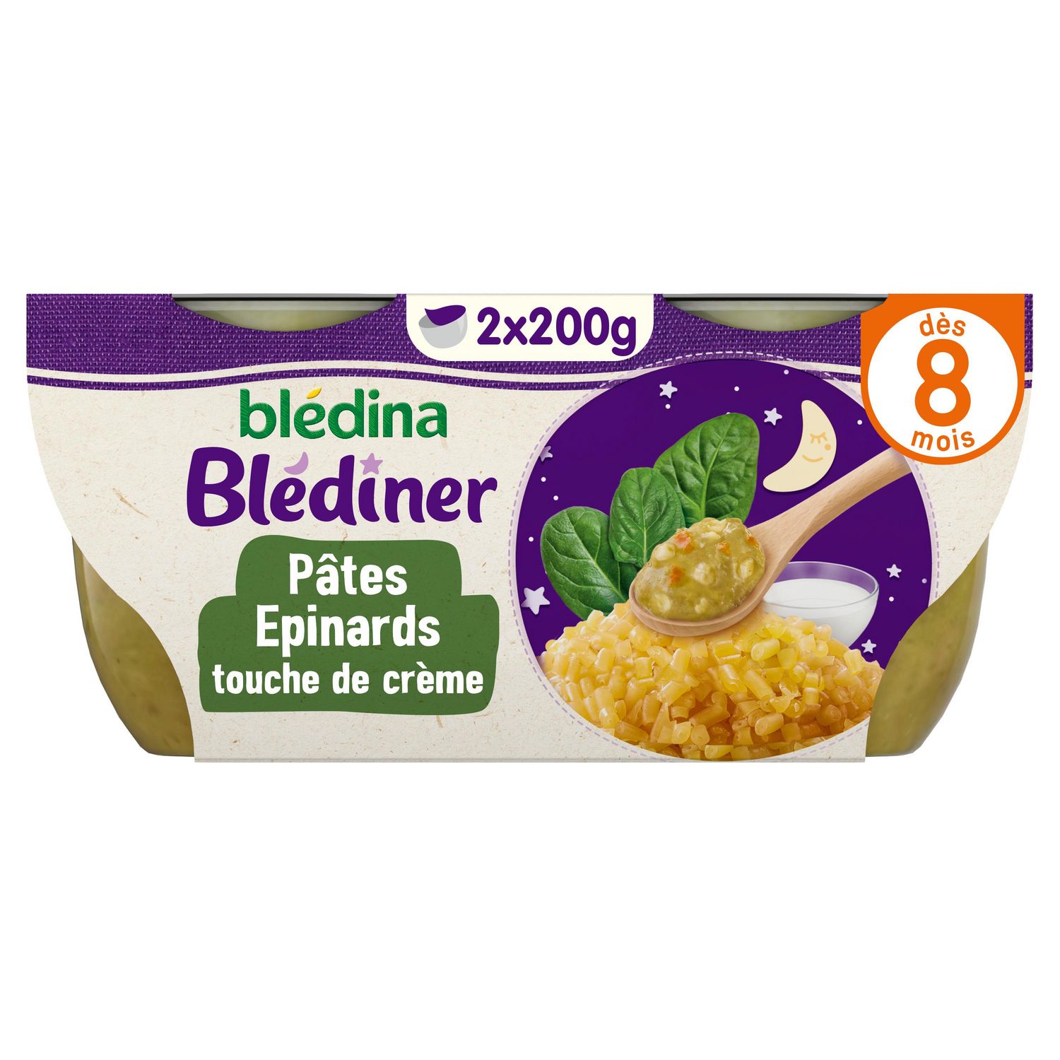 Expert de la diversification alimentaire depuis plus de 100 ans, Blédina vous accompagne pour tous les repas de votre bébé. Notre mission ? Eveiller sa curiosité pour le manger vrai, grâce à plus de 250 recettes conçues par des nutritionnistes et parfaitement adaptées à ses besoins. Blédina Blédiner - Petites Pâtes Epinards Touche de Crème dès 8 mois. Découvrez ces savoureuses recettes BLEDINA pour le dîner de bébé. Des petits plats bébé à donner à la cuillère qui associent des légumes et des féculents variés, à une touche de lait pour la douceur. Un savoureux plat complet du soir pour bébé ! BLEDINER 2x200g Petites pâtes Epinards Touche de Crème c'est Des LEGUMES au goût tout doux + Du LAIT pour la douceur + DES FECULENTS ! BLEDINER 2x200g Plat à base de légumes adapté à bébé dès 8 mois.