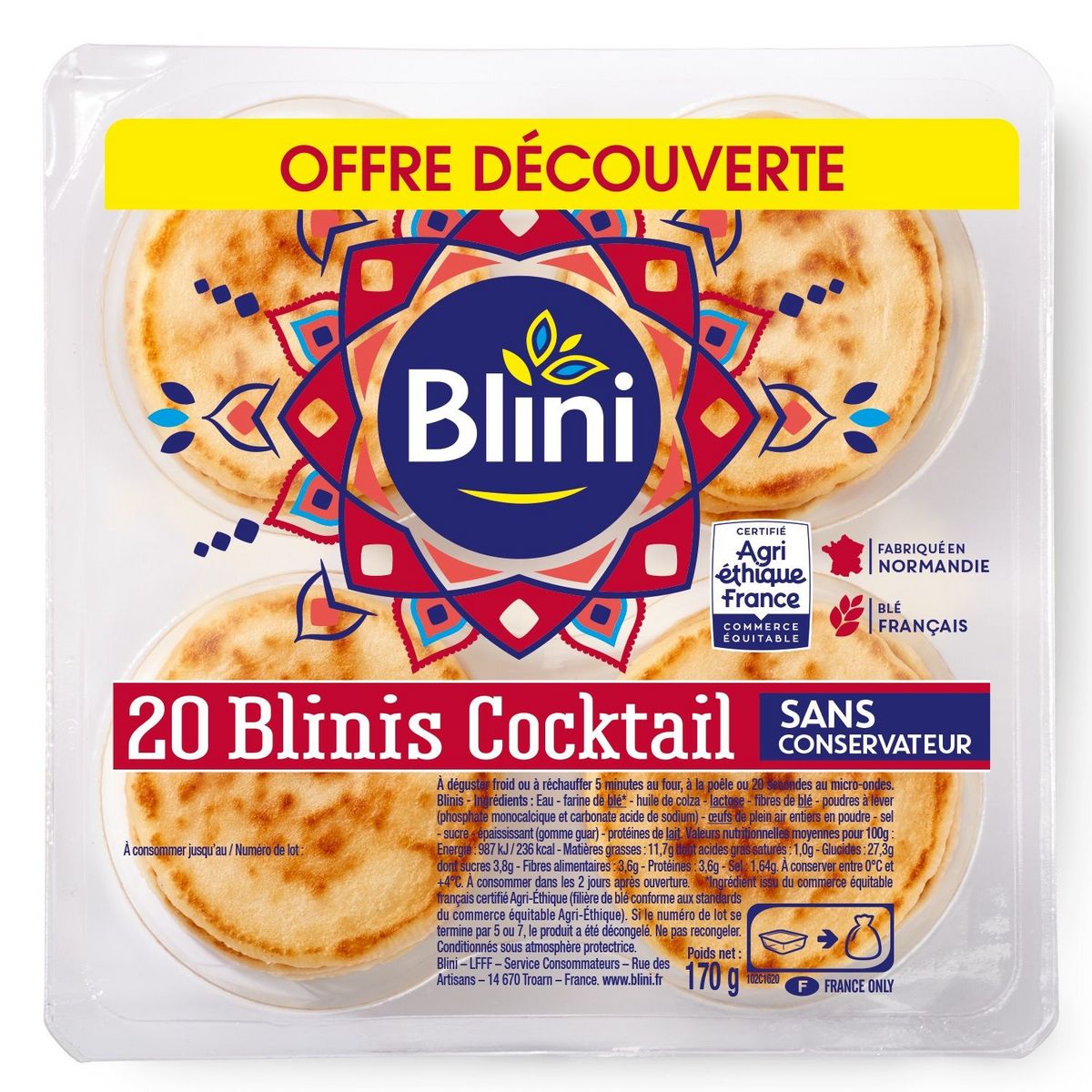 20 blinis cocktails, sans conservateur, à déguster chauds ou froids à l'apéro !