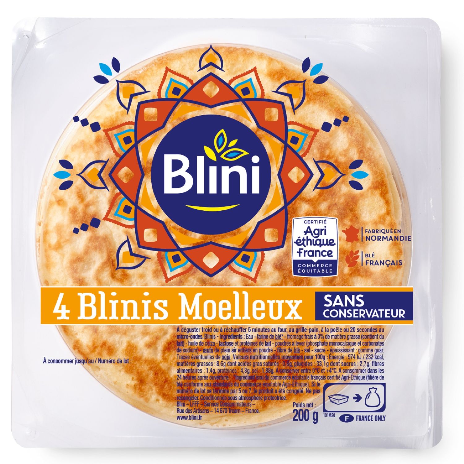 4 grands blinis, sans conservateur, a deguster idealement avec du saumon fume.