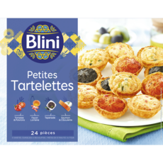 Assortiment de 24 petites tartelettes précuites surgelées pour apéritif, déclinées en 4 variétés : Tomates - Poivrons rouges, Lorraine, Tapenade, Saumon - Ciboulette. Succombez au croquant de leur pâte sablée et au fondant de leurs garnitures. Avec les petites tartelettes, partagez un moment en famille ou entre amis en toute simplicité !