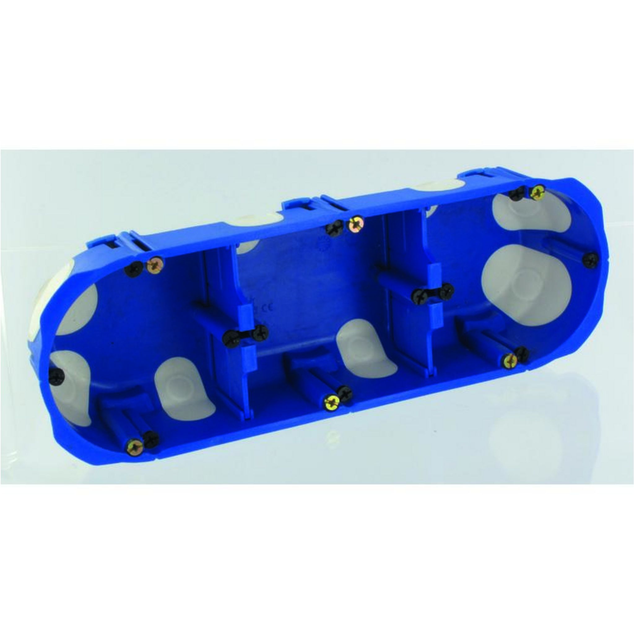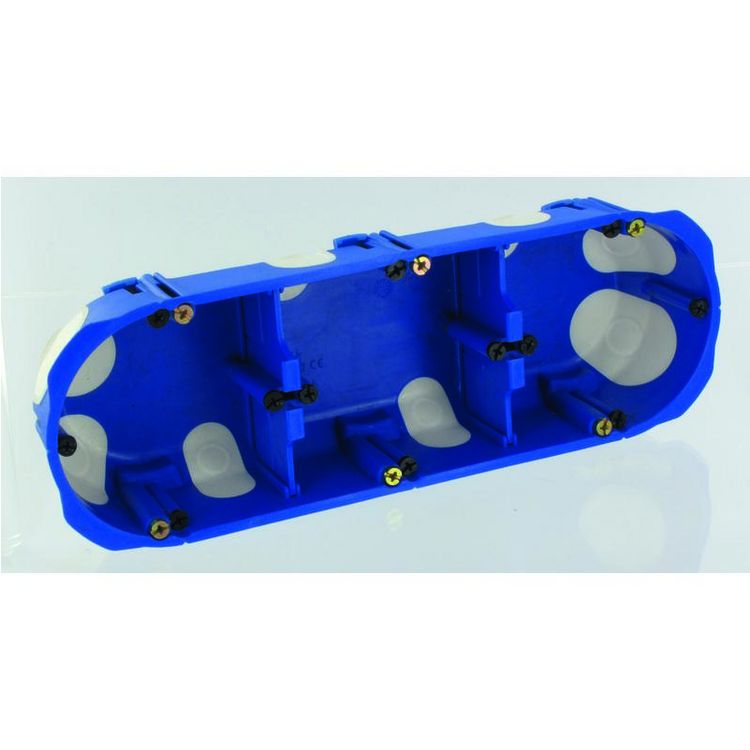 Applique triple No Air BLM.3 postes.Une gamme de boite qui permet d'isoler au mieux vos installations, pour plus d'économie d'énergie.Installer vos boitier de centre pour lustre avec facilité.Dimensions : 67 mm de diamètre, 40 mm de profondeur.Matière Plastique.Coloris Bleu et Blanc.Correspond aux n