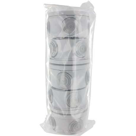 Lot de 5 boites de dérivation étanche 960°C BLM.Format : 70 mm de Diamètre et 35 mm de profondeur.Avec couvercle d'isolation.4 Entrées isolantes.Coloris gris.Matière plastique.IP55.