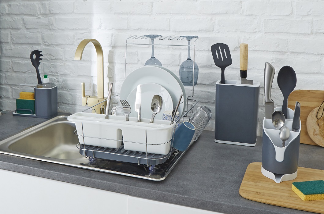 Organisez facilement votre cuisine grâce à ce bloc de rangement en plastique gris et blanc pour couverts au design sobre et épuré. Dimensions : 16.6 x 10 x 23.7 cm