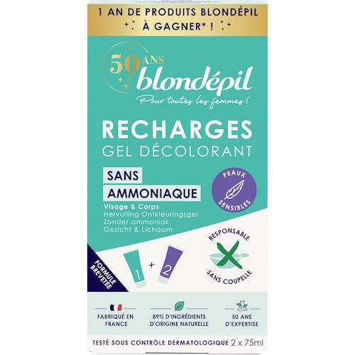 BLONDEPIL RECHARGE GEL DECOLORANT SANS AMMONIAQUE VISAGE ET CORPS 150ML (2X75ML)