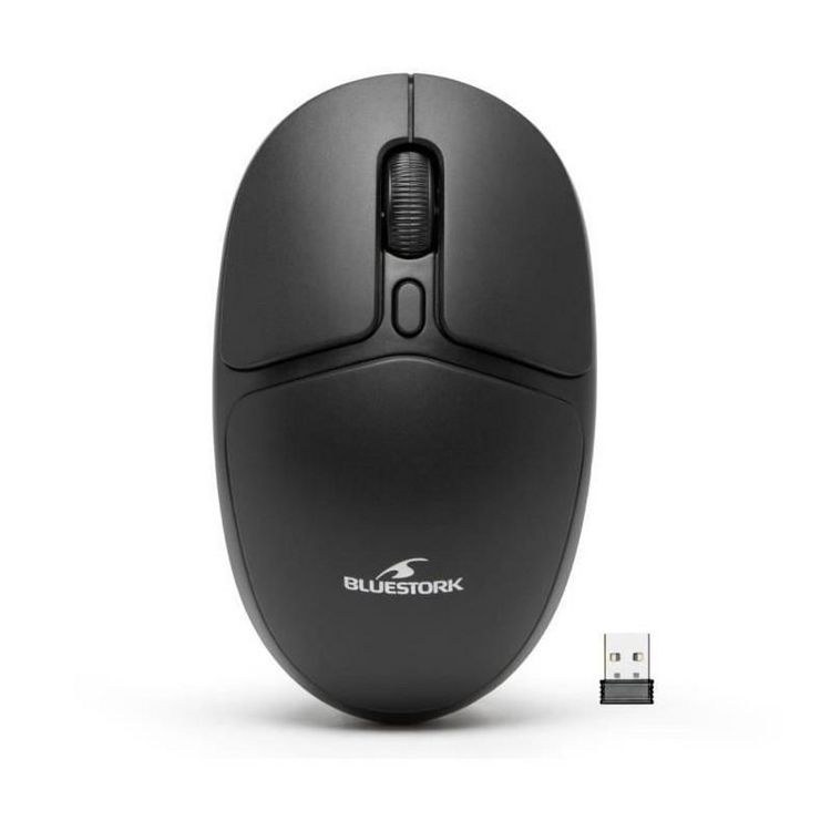 La souris sans fil BLUESTORK Office 25 utilise une technologie RF 2.4 GHz pour une transmission stable jusqu'à 10 mètres de portée. Son nano-récepteur USB se range dans le compartiment dédié de la souris, idéal pour le transport et la protection du dongle.