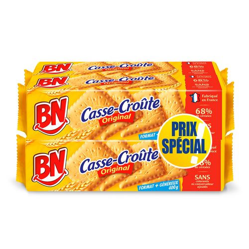 Ingrédients: farine de FROMENT 68% - sucre - matière grasse végétale (palme) - amidon de FROMENT - sirop de glucose - poudres à lever : carbonates d'ammonium et de sodium - sel - agent de traitement de la farine : l-cystéine - LACTOSE et protéines de LAIT - ârome. peut contenir des traces de fruits a coque et de soja