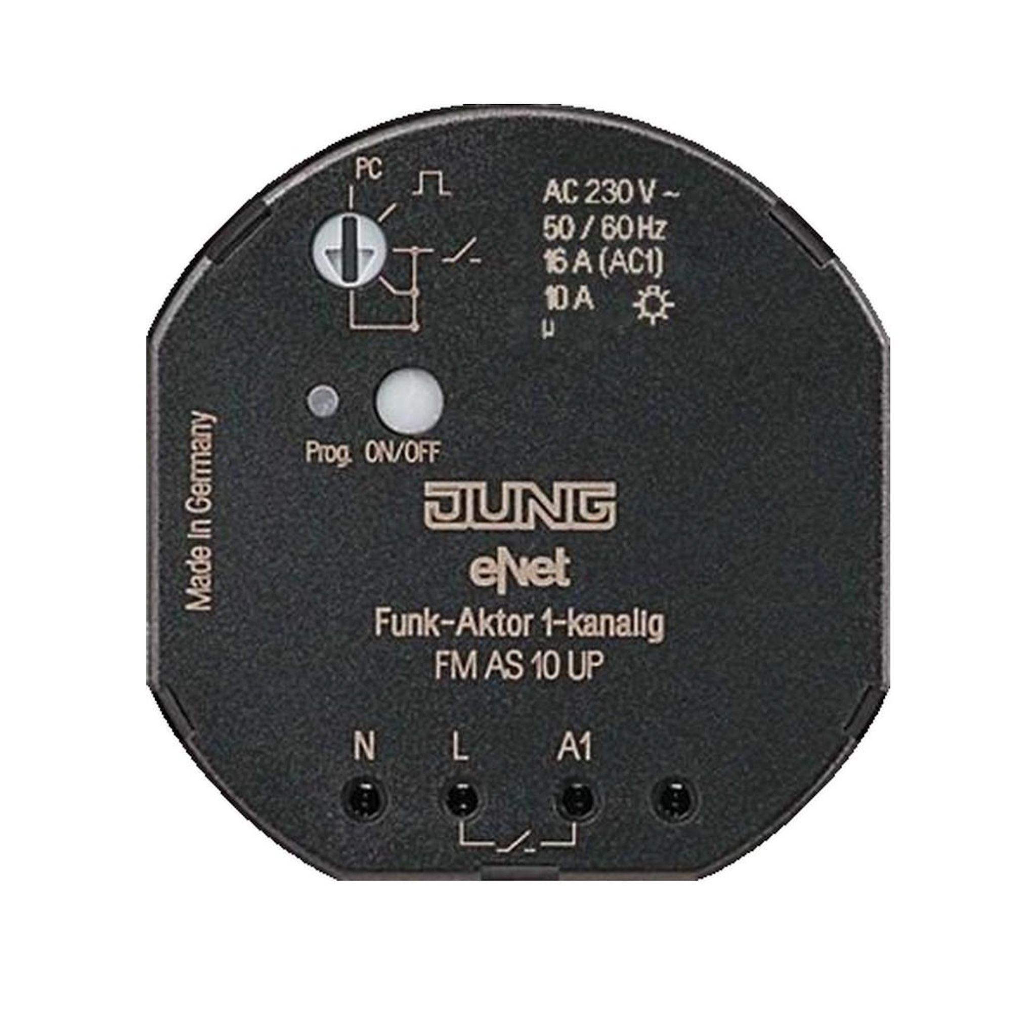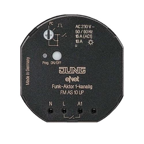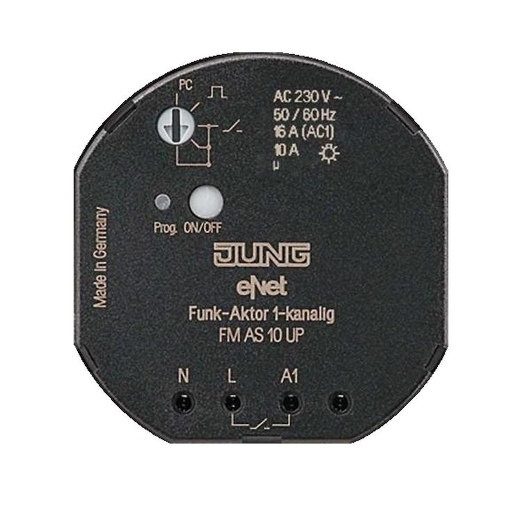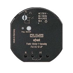 L'actionneur radio eNet de la marque Jung permet de contrôler l'éclairage grâce à une technologie sans fil compatible avec les émetteurs radio eNet. Conçu pour une installation dans un boîtier de mécanisme conforme aux normes DIN 49073, cet appareil présente une finition noire discrète adaptée à un