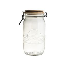 Conserves, graines, pâtes, biscuits... ce joli bocal abrite tout ce que vous voulez ! En verre joliment travaillé, transparent pour repérer facilement son contenu, il a un couvercle en bois qui lui ajoute une note chaleureuse et déco ! Bien hermétique il conserve la fraîcheur des aliments et préserve les arômes et les saveurs. Contenance du bocal 1,5 l.