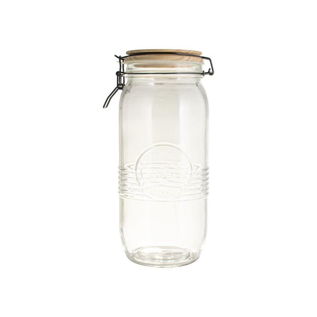 Conserves, pâtes, graines, biscuits... ce joli bocal abrite tout ce que vous voulez ! En verre joliment travaillé, transparent pour repérer facilement son contenu, il a un couvercle en bois qui lui ajoute une note chaleureuse et déco ! Bien hermétique il conserve la fraîcheur des aliments et préserve les arômes et les saveurs. Contenance du bocal 2 l.