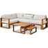 Polyvalent et chic, le salon de jardin d'angle modulable LEVATA OTTOMAN en bois d'acacia accueille 5 personnes. Il est doté d'une table ottoman convertible et d'une housse. Le coloris blanc cassé apporte une touche élégante a votre espace extérieur.