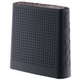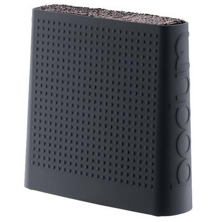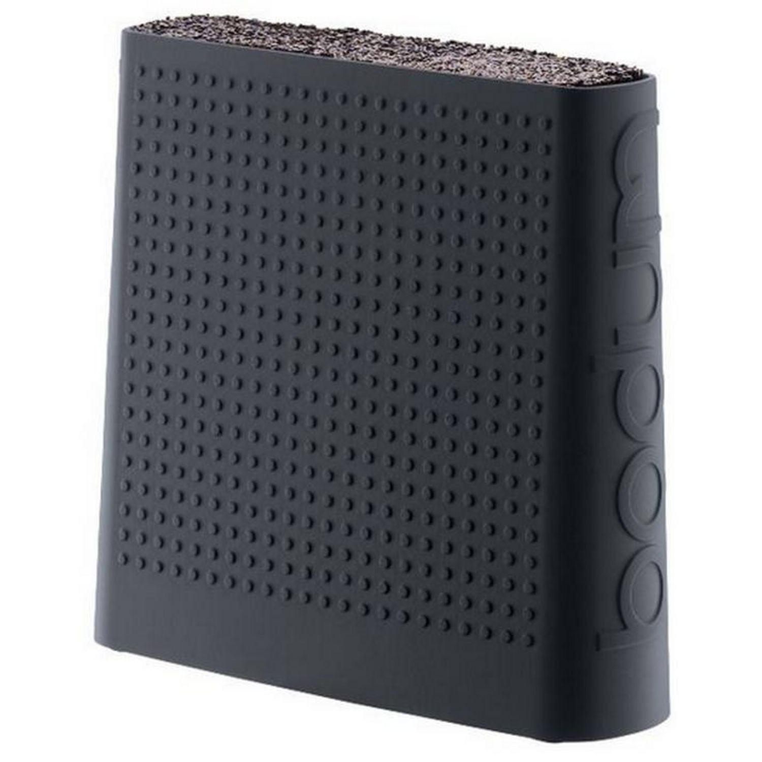 Bodum 11089-01S Bloc couteau Bistro Bodum 11089-01S. Ce bloc vous permet d'avoir toujours vos couteaux à portée de mains mais aussi de les ranger en toute sécurité. Accueille tous types de couteaux. Des tiges fines en plastique permettent de ranger les couteaux n'importe où dans le bloc. Extérieur en plastique et silicone.