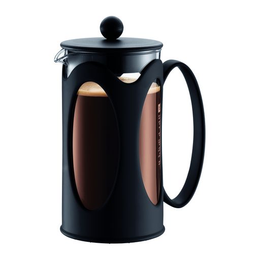 8 Tasses, 1 L, Verre, Acier inoxydable, Protection plastique contre les chocs, Hauteur 21 cm