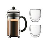 Cafetière Bodum Chambord avec verres Pavina double paroi gris