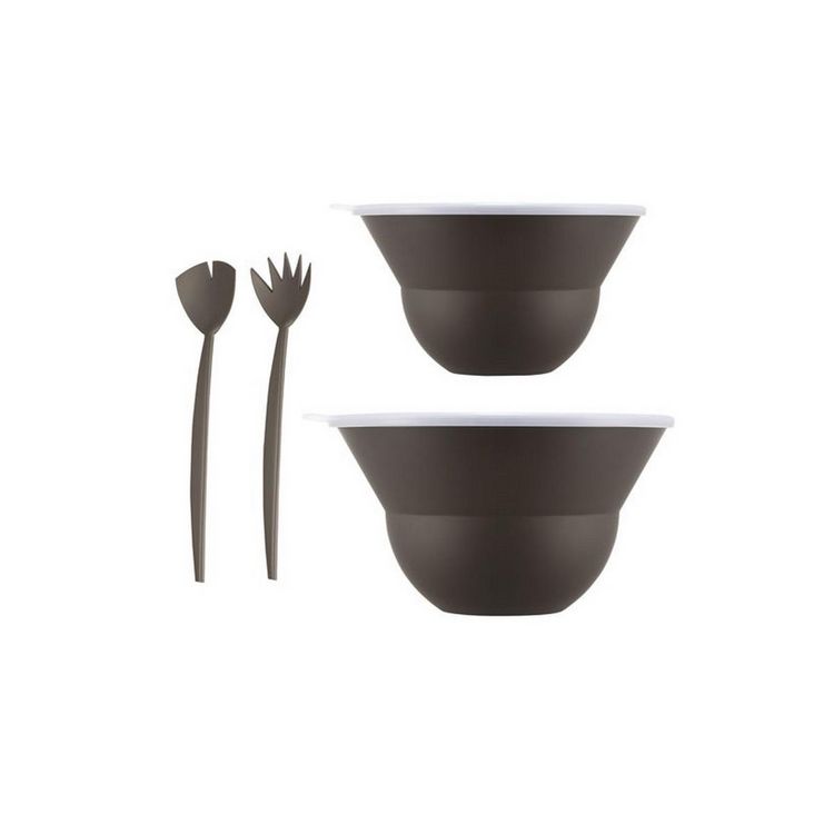 Lot de 2 saladiers 3l/4.9l avec couvercle + couverts marron - K2551-451-143S-1