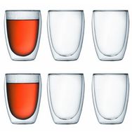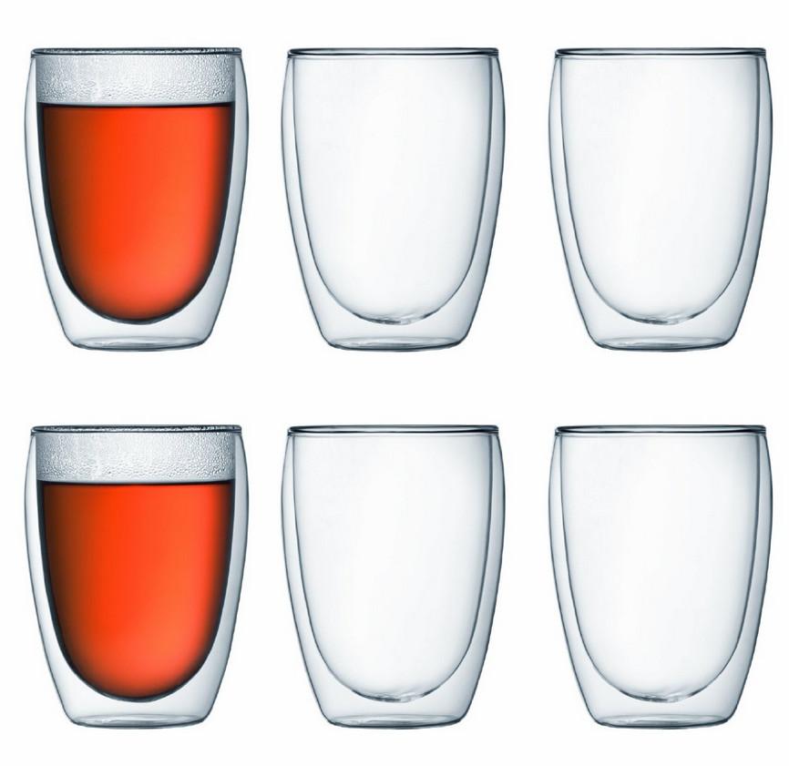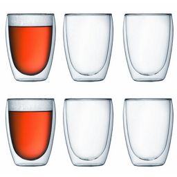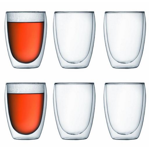 Bodum 4559-10-12 Les verres double paroi Pavina 4559-10-12 de BODUM ont un design avant-gardiste allié à un style intemporel qui en font des altiques.Fabriquée en verre borosilicate très résistant et soufflé à la bouche par des artisans, la construction en double paroi crée une couche d'isolation extrêmement efficace.Les boissons chaudes restent chaudes plus longtemps et on ne se brûle plus les doigts en tenant son verre et inversement, les boissons froides restent fraîches plus longtemps et vous n'aurez plus de condensation désagréable et inesthétique à l'extérieur du verre !Ces verres respirent grâce au joint en silicone breveté placé sous chaque verre : le joint équilibre la pression de l'air contenu dans la double paroi avec la pression extérieure.Ce joint est perméable uniquement à l'air et pas à l'eau pour assurer étanchéité et durabilité et empêcher les liquides d'entrer entre les deux couches.Savourez un thé glacé ou un cappuccino fumant : ces verres sont le contenant idéal pour tout types de boissons.Servez-vous de ces verres comme alternative chic pour servir verrines ou portions individuelles : ces verres sont compatibles four et micro-ondes jusqu'à 176°C.Passent au lave-vaisselle : les verres gardent leur transparence au fil du temps.