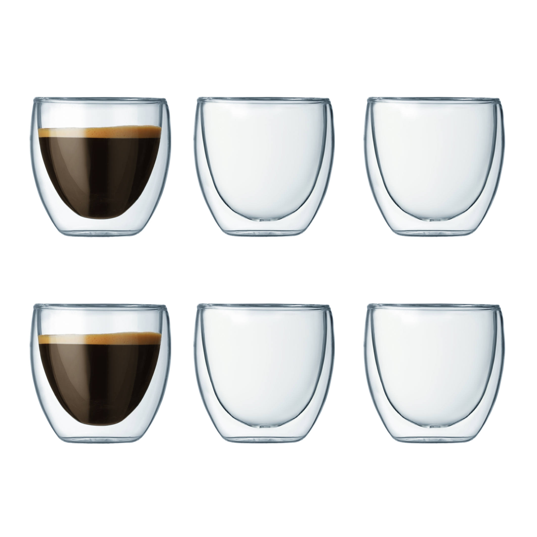 Bodum 4557-10-12 Les 6 verres 4557-10-12 expresso Pavina possèdent une double paroi transparente, très originale cela forme un verre dans un autre.