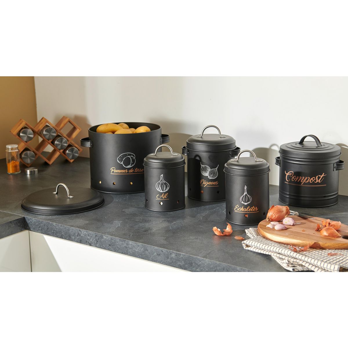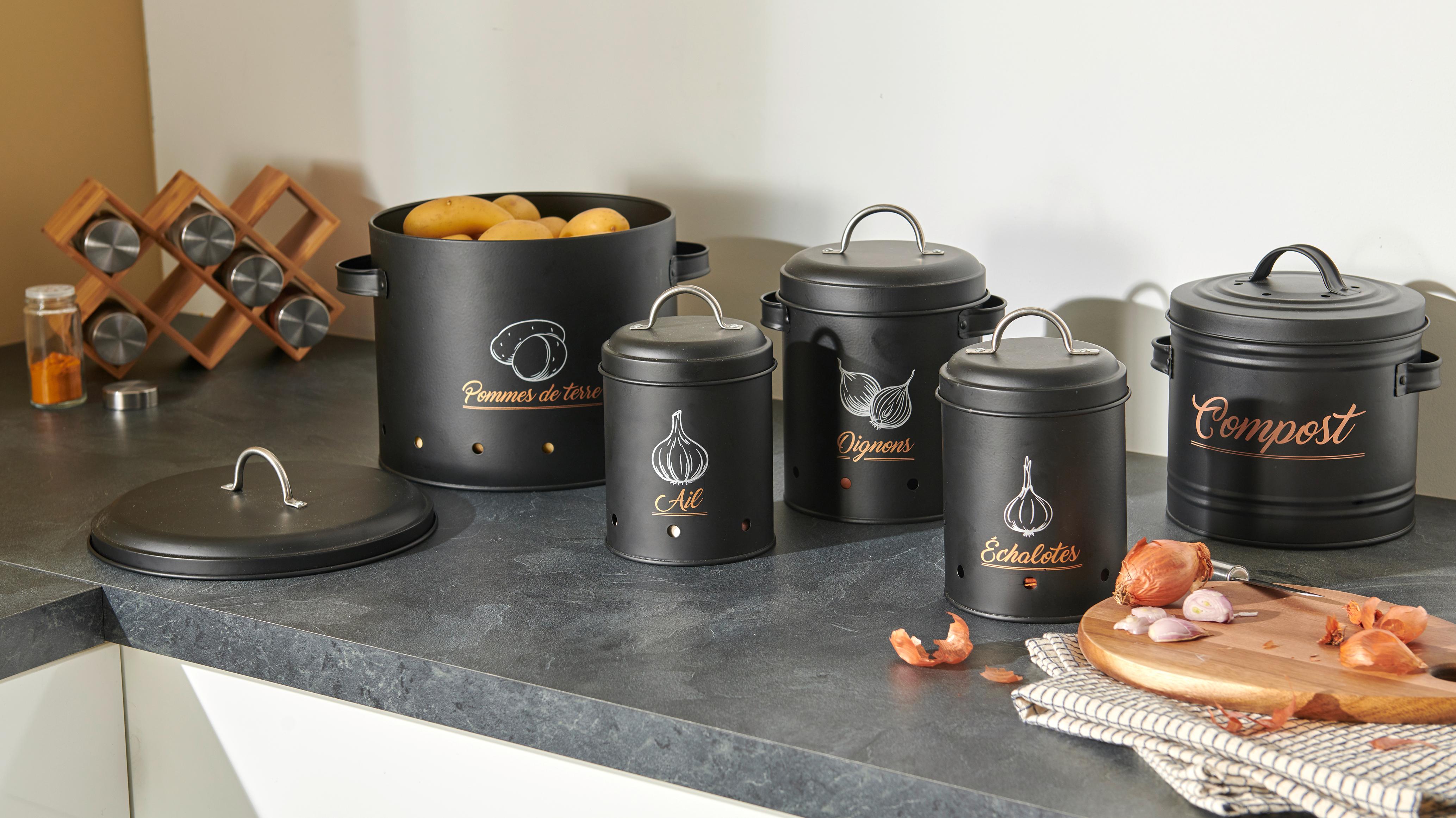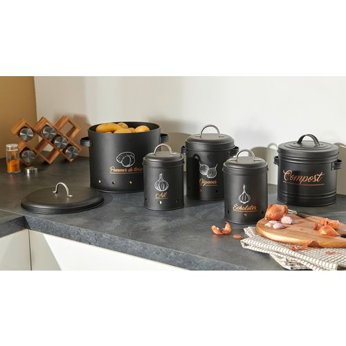 Découvrez cette boite de conservation décorée en métal noir. Idéale pour conserver vos aliments au sec tout en apportant une touche de décoration à votre cuisine.