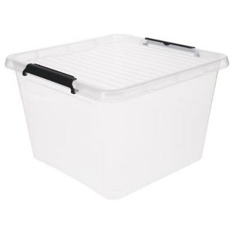 Informations Techniques : Dimensions : L. 39 x l. 39 x H. 26 cm Matière : Polypropylène Spécificités : Pratique & Utile Boîte de Rangement Fermeture à Clip Forme Carrée Contenance : 32 L Facile d'Utilisation & d'Entretien Poids : 0,574 kg Couleur : Transparent