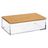 Informations Techniques : Dimensions : L. 16 x l. 9,6 x H. 5,1 cm Matières : Polystyrène & Bambou Spécificités : Pratique & Chic Couvercle en bambou Facile d'entretien et d'utilisation Poids : 0,231 kg Couleur : Transparent & Naturel