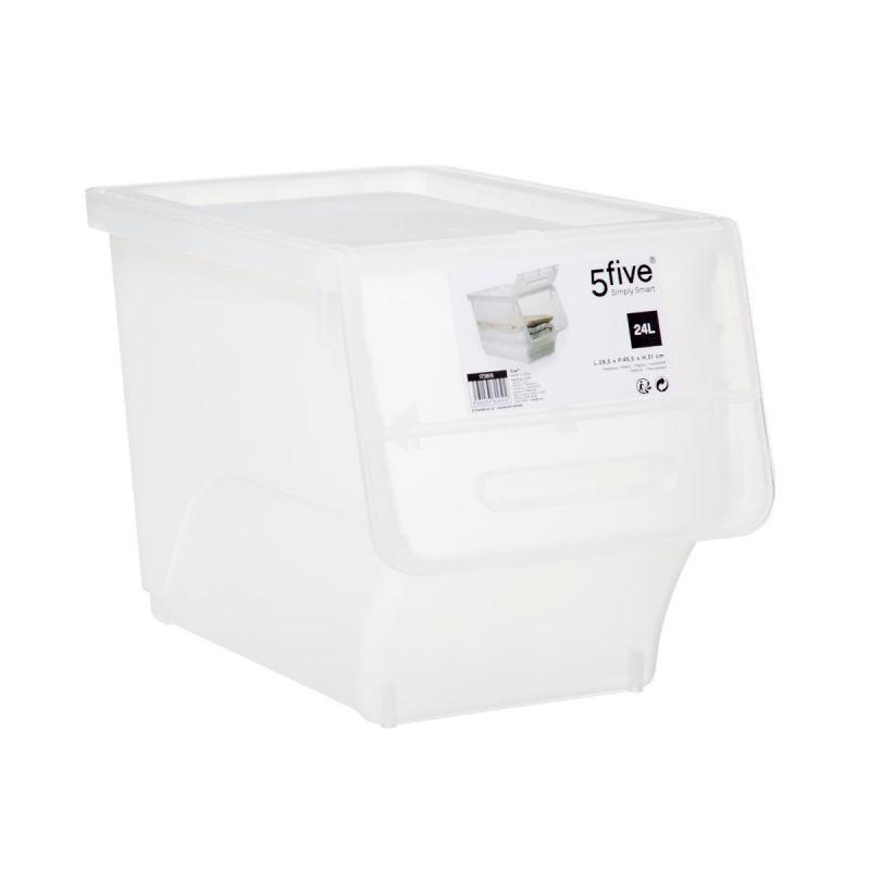 Informations Techniques : Dimensions : L. 28,5 x l. 45,5 x H. 31 cm Matières : Polypropylène Spécificités : Pratique & Malin 1 Ouverture Frontale Capacité : 24 L Poids : 0,968 kg Couleur : Transparent