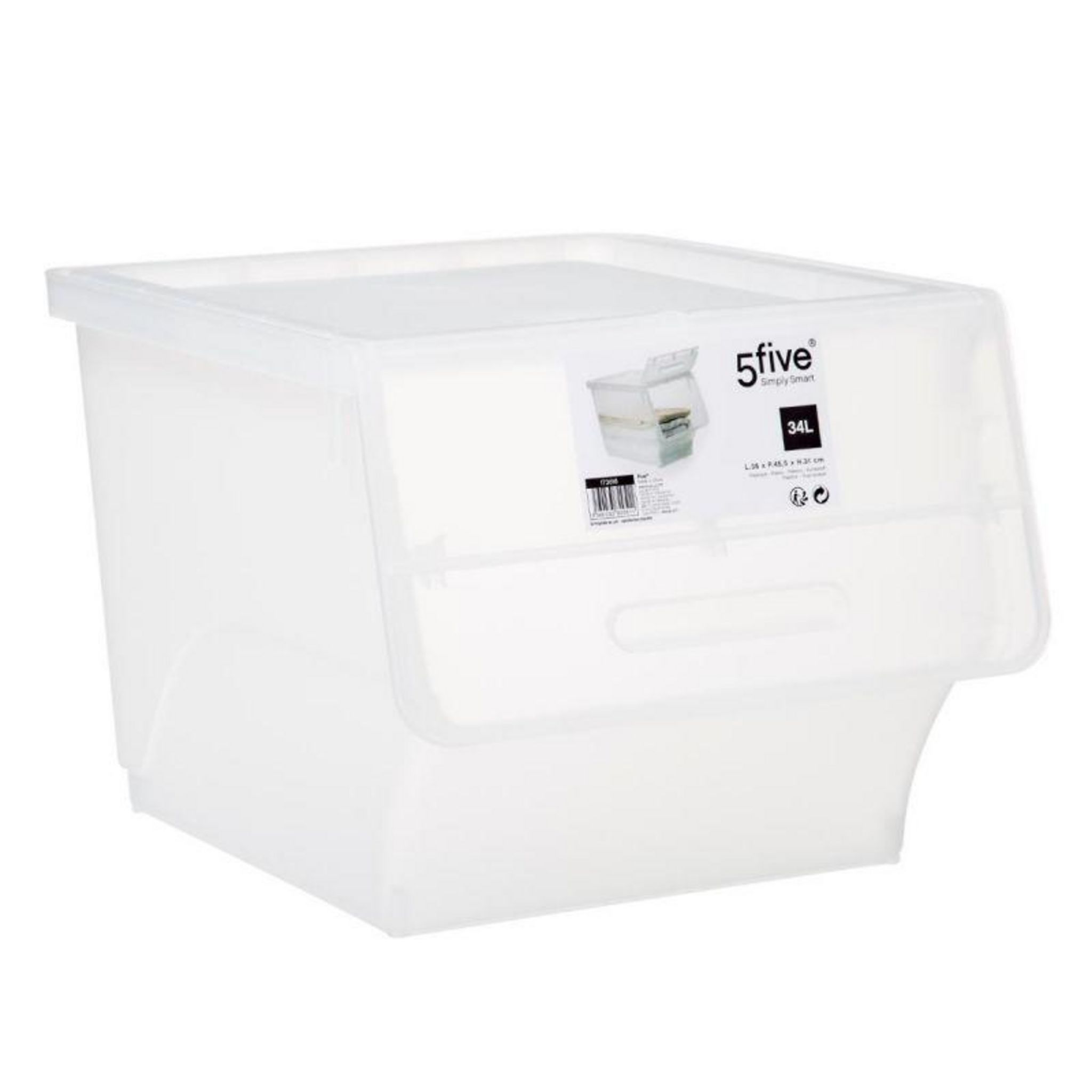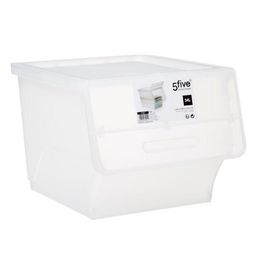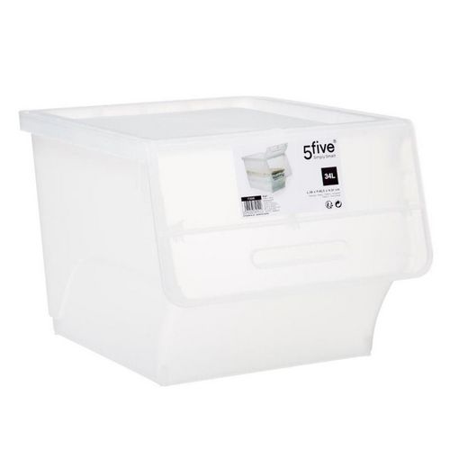 Informations Techniques : Dimensions : L. 38 x l. 45,5 x H. 31 cm Matières : Polypropylène Spécificités : Pratique & Astucieux 1 Ouverture Frontale Capacité : 34 L Poids : 1,263 kg Couleur : Transparent