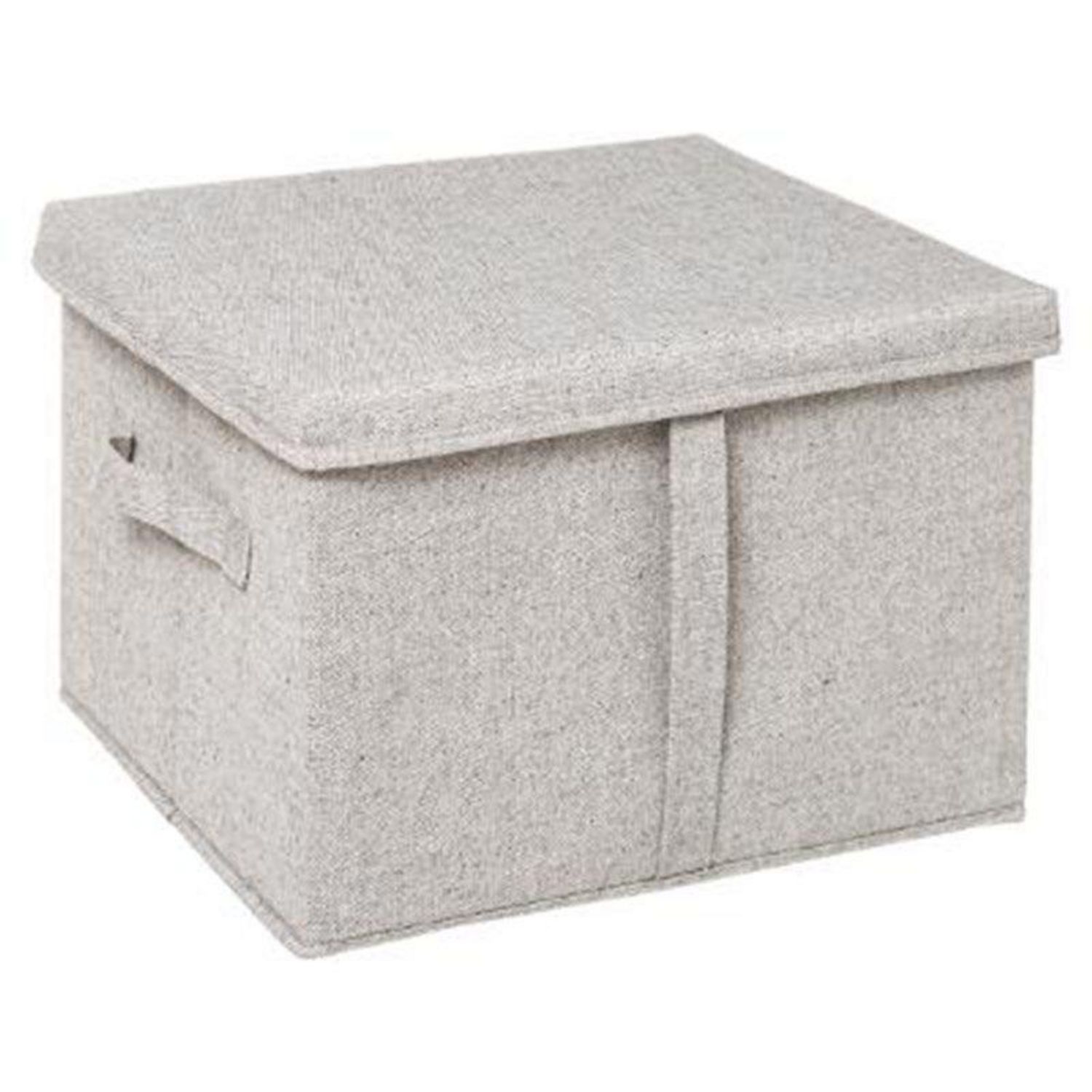 Informations Techniques : Dimensions : L. 35 x l. 31 x H. 25 cm Matières : Polyester, Polypropylène & Carton Spécificités : Pratique & Astucieux Boîte de Rangement Forme Rectangulaire Couvercle inclus Poids : 0,845 kg Couleur : Beige
