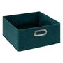 Informations Techniques : Dimensions : L. 31 x l. 31 x H. 15 cm Matières : Polypropylène, Métal & Carton Spécificités : Pratique & Astucieuse Boîte de Rangement Pliable Forme Carrée Grammage : 80GSM non tissé Compatible avec les Étagères Mix N'Modul Poids : 0,349 kg Couleur : Bleu Pétrole