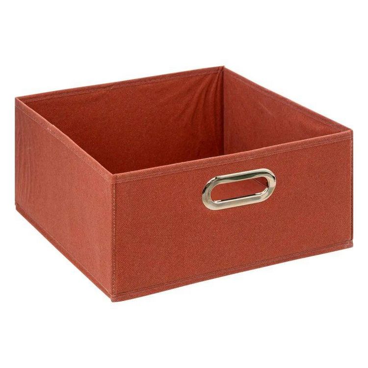 Informations Techniques : Dimensions : L. 31 x l. 31 x H. 15 cm Matières : Polypropylène, Métal & Carton Spécificités : Pratique & Astucieuse Boîte de Rangement Pliable Forme Carrée Grammage : 80GSM non tissé Compatible avec les Étagères Mix N'Modul Poids : 0,349 kg Couleur : Terracotta