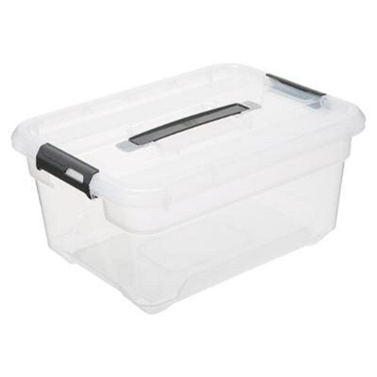 Informations Techniques : Dimensions : L. 38,5 x l. 29 x H. 18,5 cm Matières : Polypropylène Spécificités : Pratique & Utile Boîte de Rangement Forme Rectangulaire Poignées avec charnières Roues bidirectionnelles Contenance : 13 L Poids : 0,562 kg Couleur : Transparent
