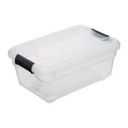 Informations Techniques : Dimensions : L. 28,5 x l. 19 x H. 12,3 cm Matières : Polypropylène Spécificités : Pratique & Utile Boîte de Rangement Forme Rectangulaire Poignées avec charnières Roues bidirectionnelles Contenance : 4 L Poids : 0,268 kg Couleur : Transparent