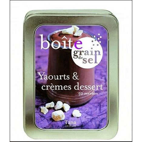 Dans cette magnifique boite en métal qui trouvera assurément sa place dans votre cuisine, vous découvrirez 50 recettes pour réussir vos yaourts et nos crèmes ! Yaourt à la réglisse, yaourt aux brownies, mousse aux fruits des bois, autant de desserts originaux pour épater la galerie sans passer des heures devant les fourneaux ! Pratiques, ces fiches plastifiées se nettoient en un coup d'éponge et se fixent partout dans votre cuisine grâce au magnet mon grain de sel métallisé !