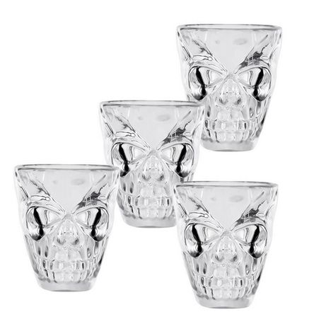 Contenu : 4 verres à shot têtes de mort.Ce set comprend 4 verres à shot en plastique transparent. Ils seront parfaits à disposer sur une table pour halloween en tant que décoration ou pour les utiliser. Ils se fondront parfaitement dans une décoration avec des têtes de mort, des toiles d'araignées e