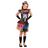 4/6 ans (104 à 116 cm) - Contenu : 1 serre-tête, 1 robe, 1 paire de jambières, 1 paire de manchettes.Ce déguisement se compose d'une robe noire effet cuir à bretelles. Il y a un dessin de squelette en blanc sur le bustier. Le jupon de la robe est style tutu avec des tissus colorés : jaune, bleu, ros