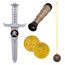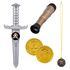 Ce set d'accessoires de déguisement de pirate comprend : un télescope 18 cm, un poignard 23 cm, une amulette et 2 pièces de monnaie. Age minimum : 3 ans